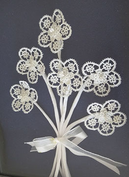 I disegni delle opere presentate sono stati realizzati da Renata in seguito a indicazioni, desideri e preferenze delle merlettaie. Nell’elenco che segue sono riportati i premi conseguiti dalle merlettaie del gruppo.